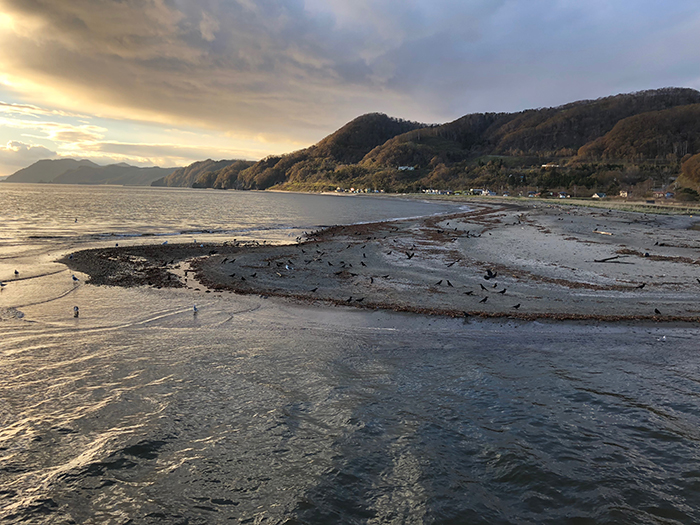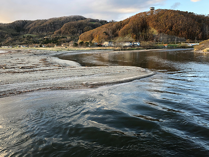夏にたまたま用事で訪れた、とある河口横の砂浜。 |