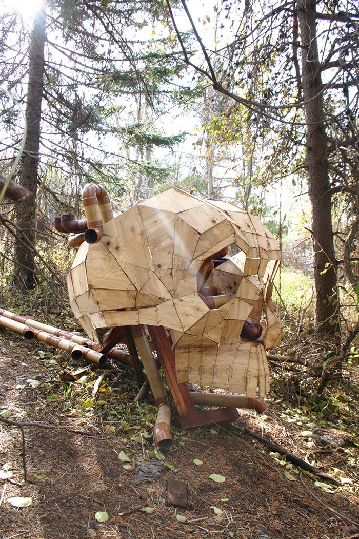 ヒトの頭蓋骨をモチーフに木をpvc(塩ビ管)で立体表現