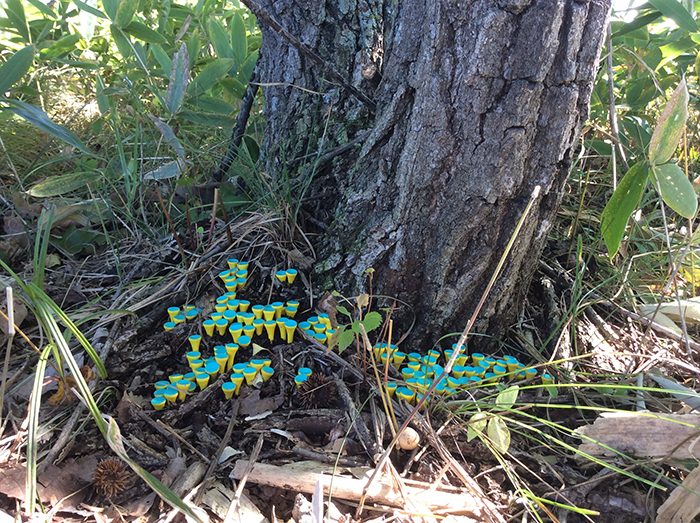 生命循環をメインテーマとした「ジェネレーション・シリーズNO4]では、ゴルフテイーをキノコに見立て、約1000ピースを自然環境の中に設置します。 日常の生活品を敢えて素材として用い、自然界に設置します。 人の営みと自然との接点また、不合理をアンチテーゼとしたインスタレーション作品です。