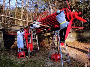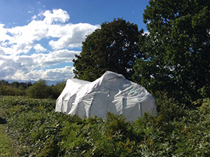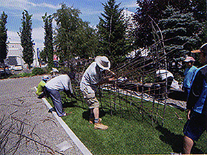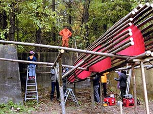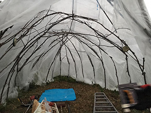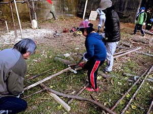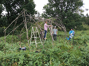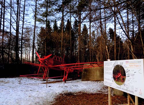 「帯広の森」でのオブジェ公開制作、掩体壕あとに子供たちと赤い飛行機を作りました。