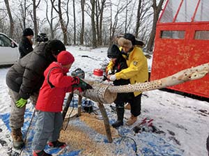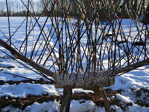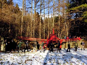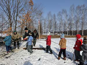 防風林と周辺雪原を舞台とした野外アート展の実地前に周辺住民の子供たちと製作しました。