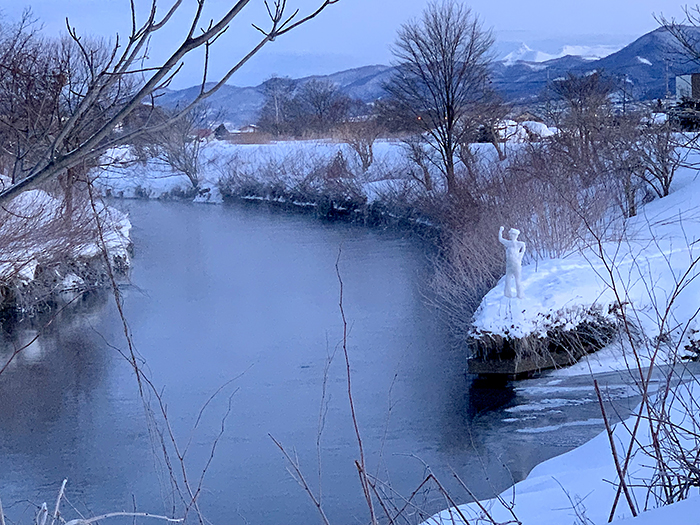 制作年 : 2018/12/31 大きさ : 幅58cm 高さ174cm 奥行28cm 作品展示場所 : 北海道北斗市萩野 久根別川と蒜沢川の河口