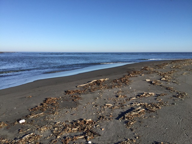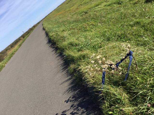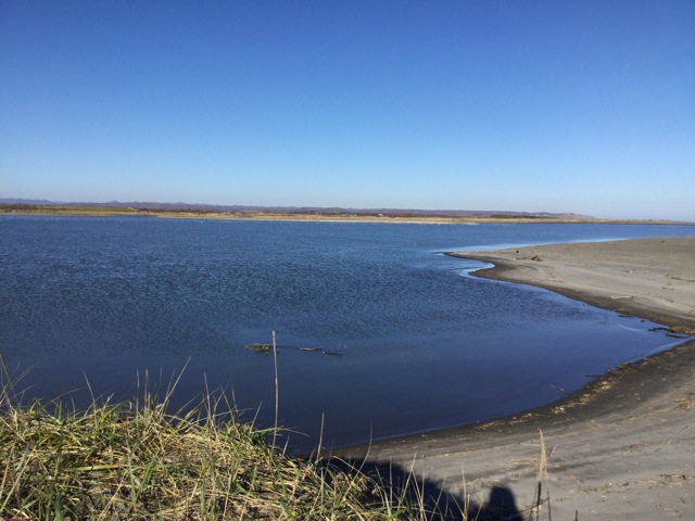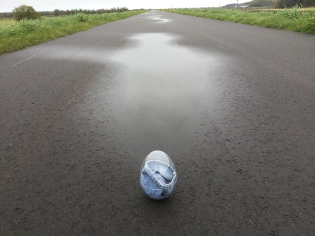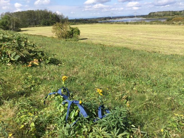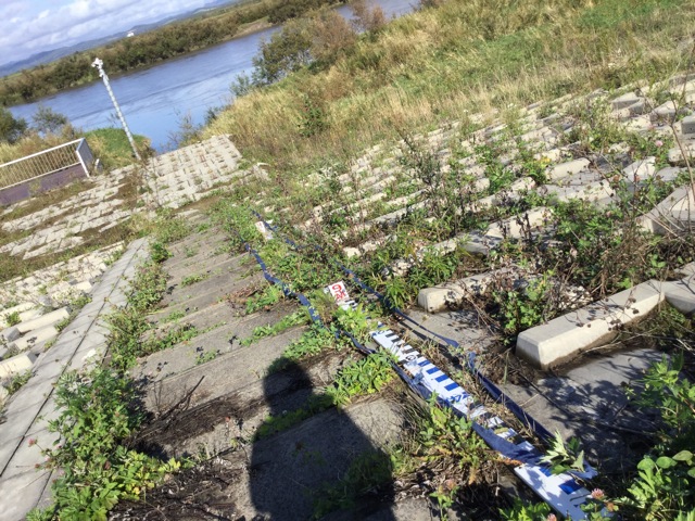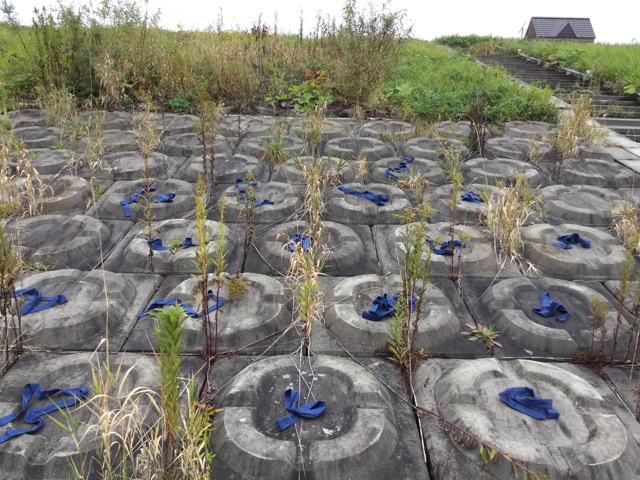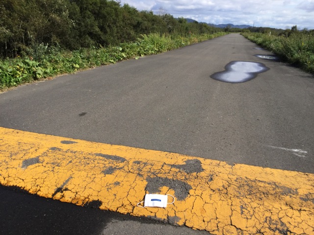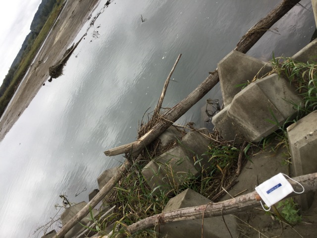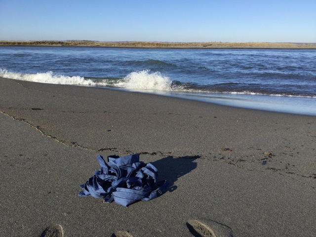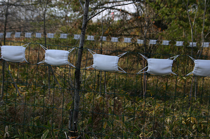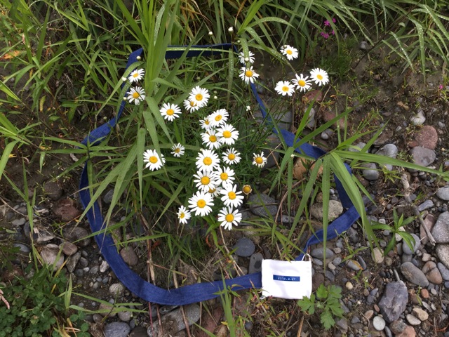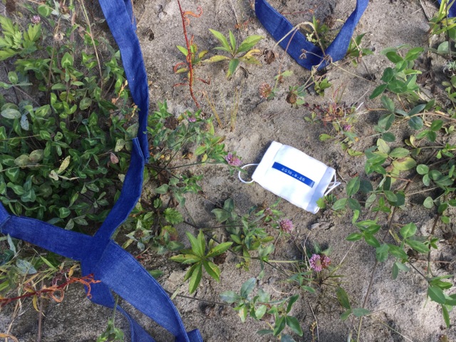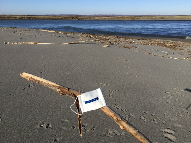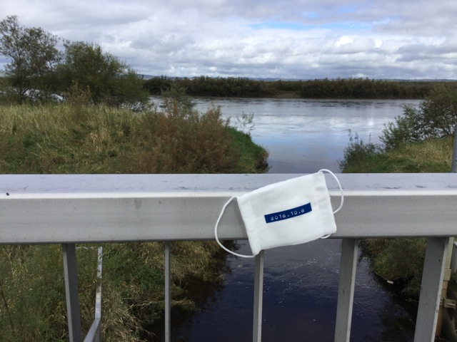11月3日 9月26日から11月3日まで、十勝大橋から十勝川河口まで、日数にして都合14日間。 私の代表的なアート素材である「ジーンズ」と「マスク」を用い、 作品をつくりながら十勝川沿いの堤防を歩き、とうとう、 十勝川が太平洋に流れ入る「河口」にたどりつくことができました。