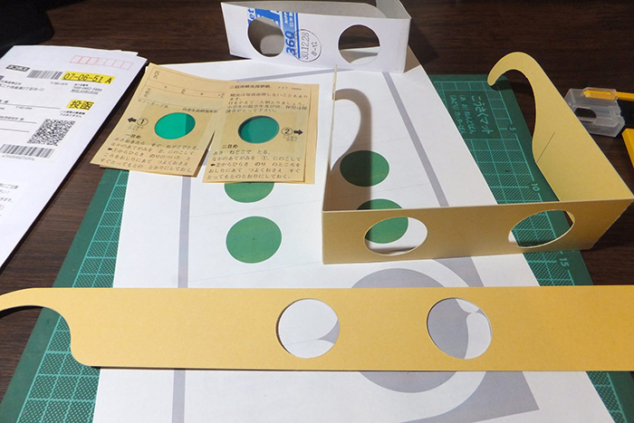 検査キットを装着する ための 紙メガネ の型紙 をつくる 。