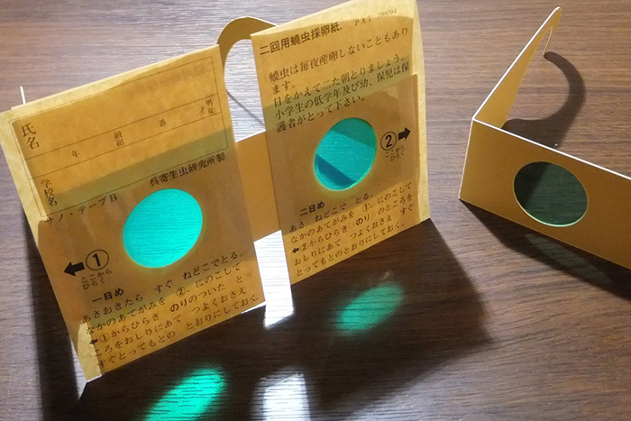 NHKの日本人の名前を取り上げるバラエティー番組で,川口(かわぐち)は川の支流が本流に合流するところで,川尻(かわじり)は海に注ぐ河口が由来であると知った。私は,川の最下流は口より尻の方がしっくりすると思いながら,自分の口から肛門までの消化管も川のようだと考えた。 さらに連想したのがぎょう虫検査である。肛門の周囲に産み付けられる卵を粘着シートで採取しようとするものだが,数年前に必須ではなくなっていて,過去のものとなっていた。それにしても,肛門の模様を刷り取るという秘密の行為が,広い世代に渡る共通体験であることは興味深い。 私にとっての河口は,小学校の教員だったときに住んでいた,海に面したまちにある。そしてそのころの私は,ぎょう虫検査の必要性や上手な「ぺったん」の仕方を説き,シートを配り,回収していた。この二つの事柄を結び付けて,懐かしい河口を,懐かしい方法を応用して調査することにした。 |