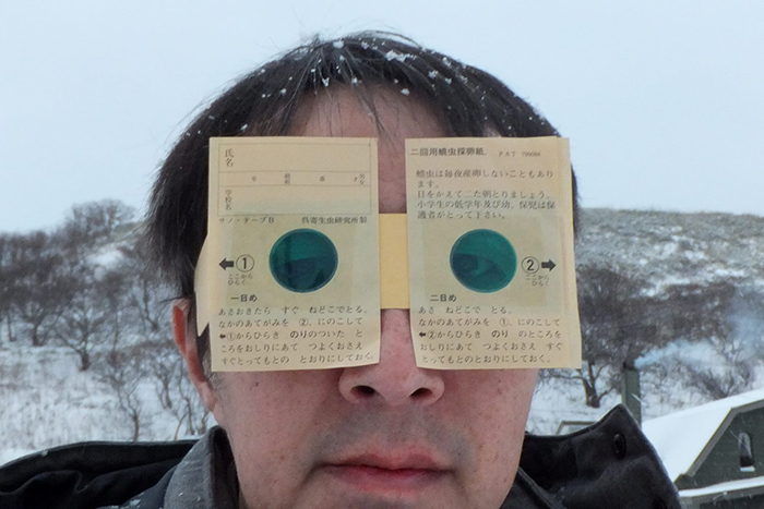 制作年 : 2018 素材 : ぎょう虫検査キット,紙セロハン 作品展示場所 : 北海道 日本海側の某所 作品設置予定日 : 12月某日