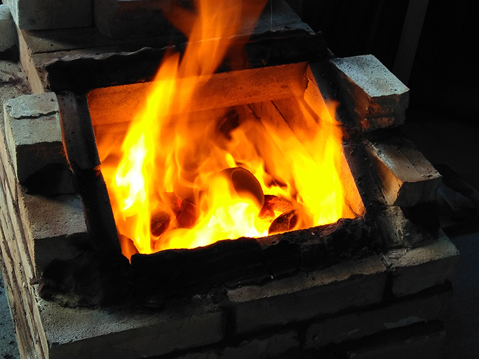雨が降り、地面に浸み込み地中に溜め込まれ、その一部が湧き水となり地表へ、それが集まり川となりやがて海へと流れ込む。 河口とは、その大きな循環の中の一部です。 淡水から海水へと変わる境目だと考えれば、一つの変化点と言えるかもしれません。 粘土を焼くと言う行為も、大きな循環の一部です。 火山によって地表に出来た岩石が、長い年月をかけて風化して細かい粒子になった物が粘土で、その粘土に熱を加えて石に戻す行為が焼き物です。 焼き物を作る過程の中での大きな変化点である窯焚きを河口と見立て、今回の作品にしたいと思います。